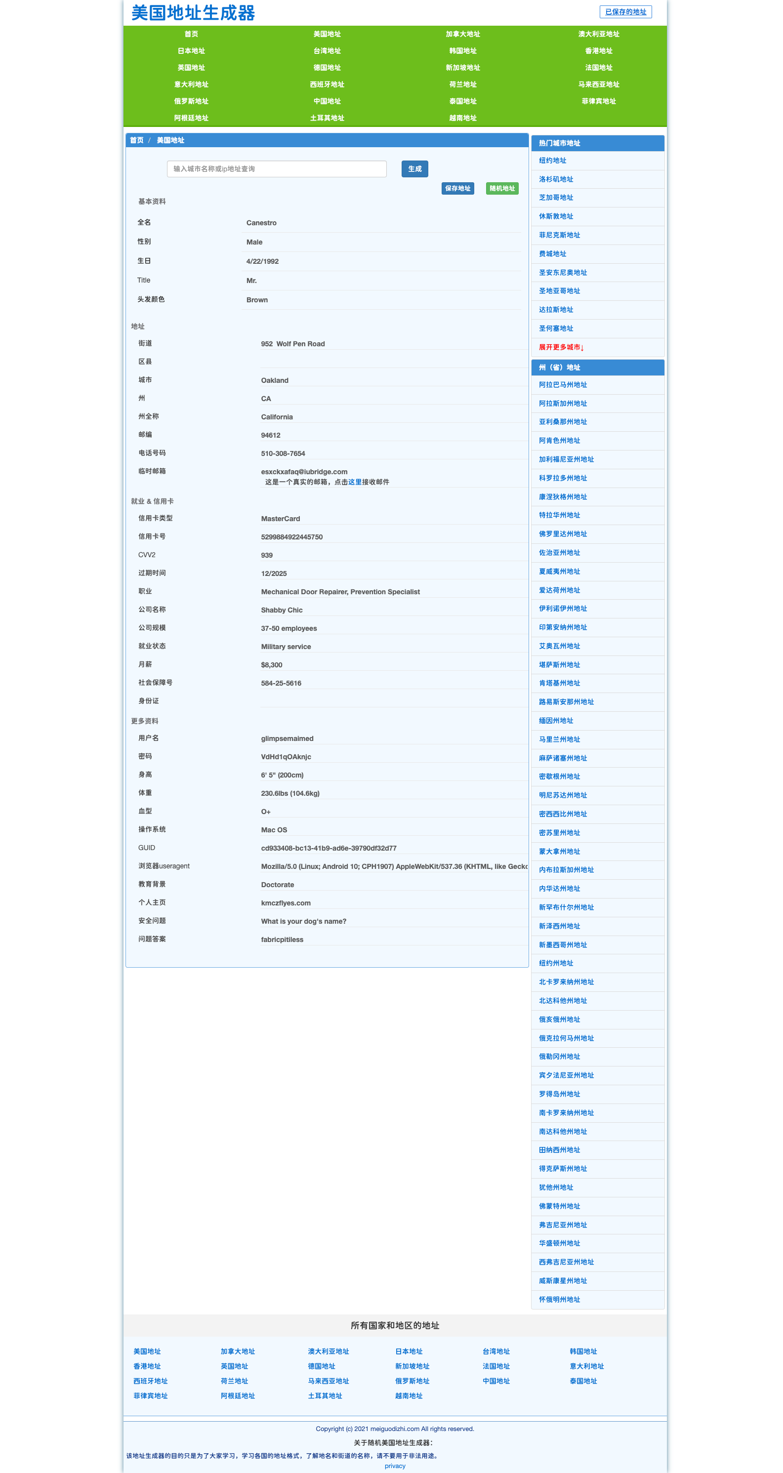 本站浮川的小窝提供的美国地址生成器都来源于网络,不保证外部链接的准确性和完整性,同时,对于该外部链接的指向,不由浮川的小窝实际控制,在2024年 7月 22日 下午5:14收录时,该网页上的内容,都属于合规合法,后期网页的内容如出现违规,可以直接联系网站管理员进行删除,浮川的小窝不承担任何责任。